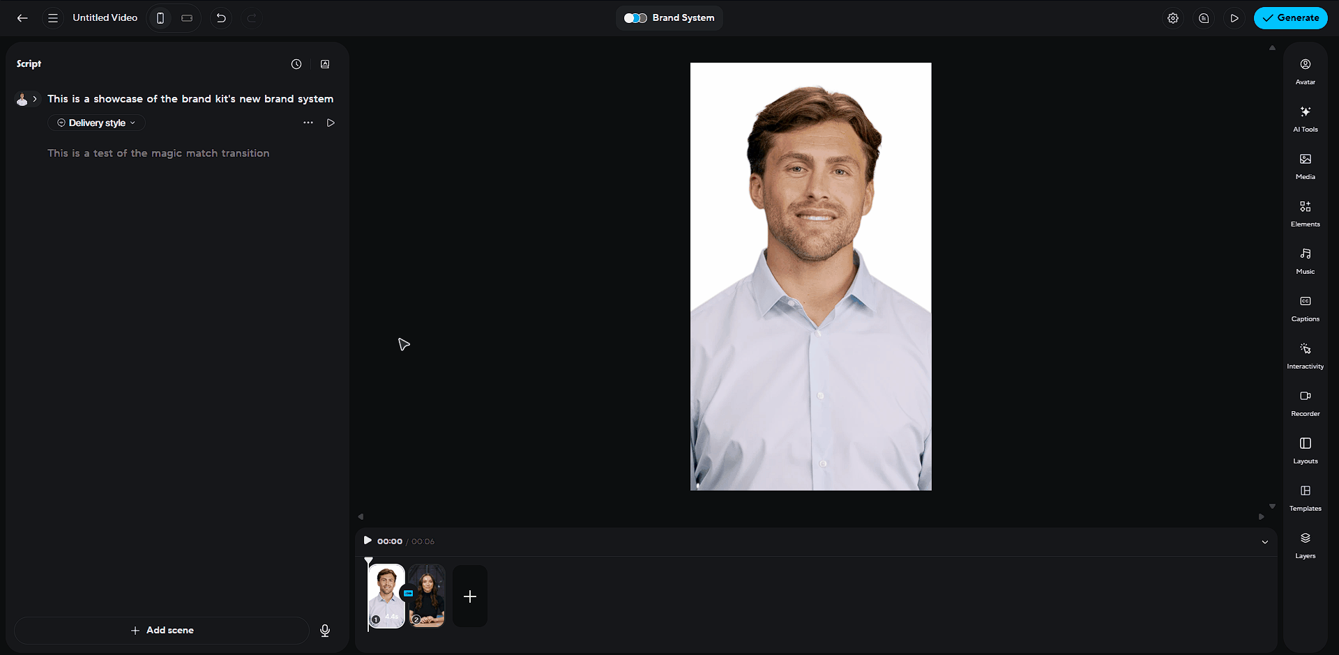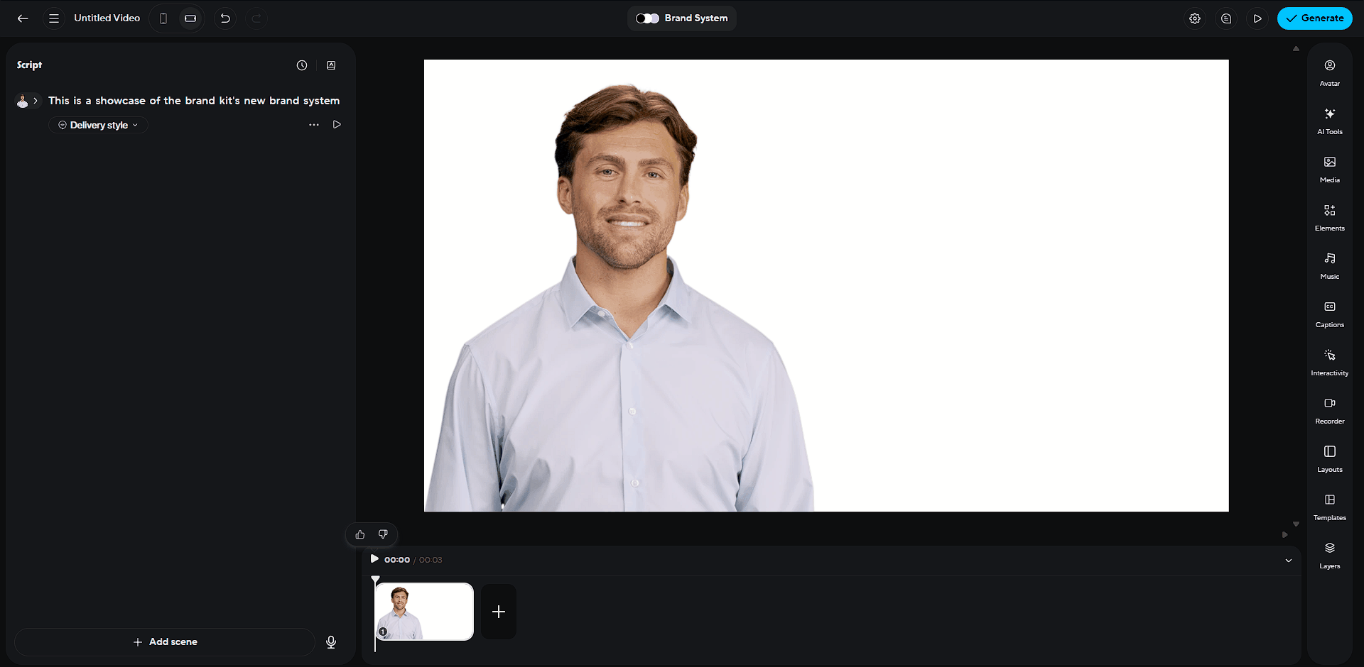 When you're creating a video in AI Studio, click the 'Brand System' button in the top to access your brand system.