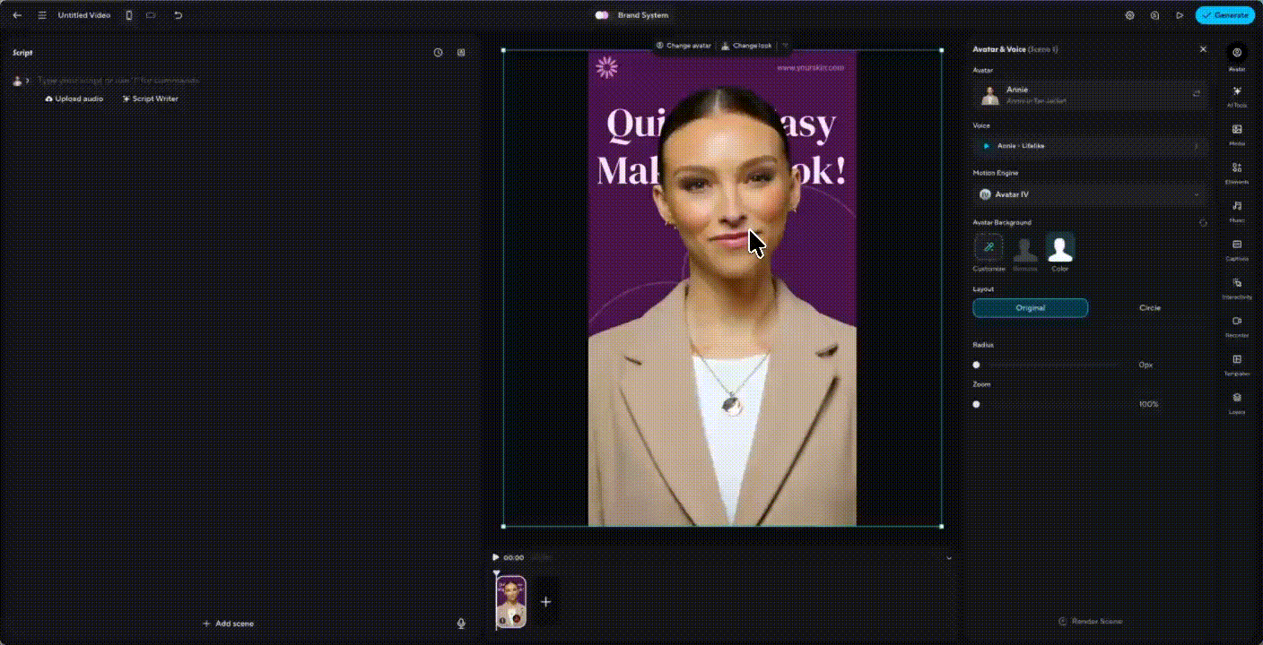 If the voice you created doesn’t fully match the tone or delivery you had in mind, Voice Doctor lets you enhance it without rewriting prompts or starting over. This tool helps improve clarity, reduce robotic-sounding artifacts, and make your avatar’s voice feel more natural and aligned with your intended style.
