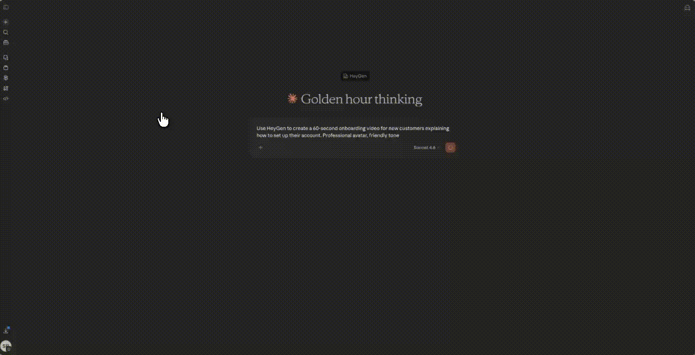 AI agent platforms like Claude are tools that can connect to external services and take action on your behalf. When you add HeyGen to Claude (MCP Connector), Claude can call HeyGen's Video Agent directly to generate finished avatar videos, without you ever opening HeyGen.