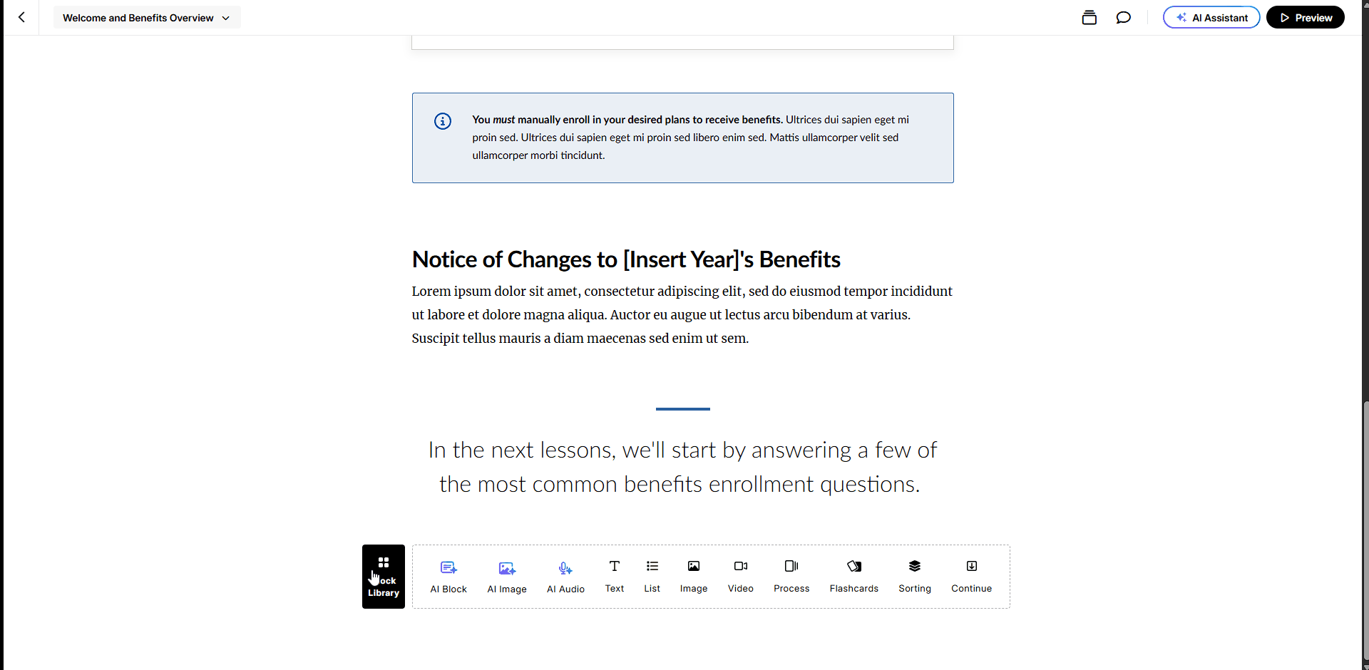 • Enable captions and clear narration to support accessibility and diverse learning needs, and design content with readability in mind for both desktop and mobile learners.