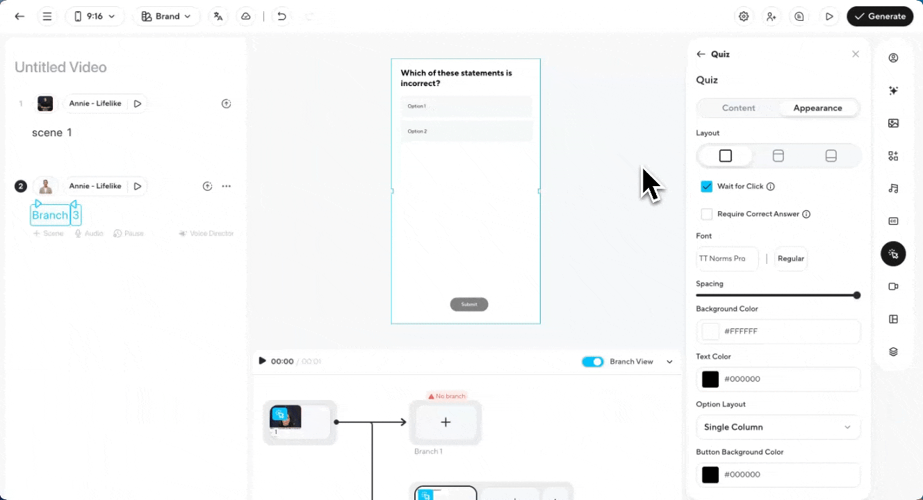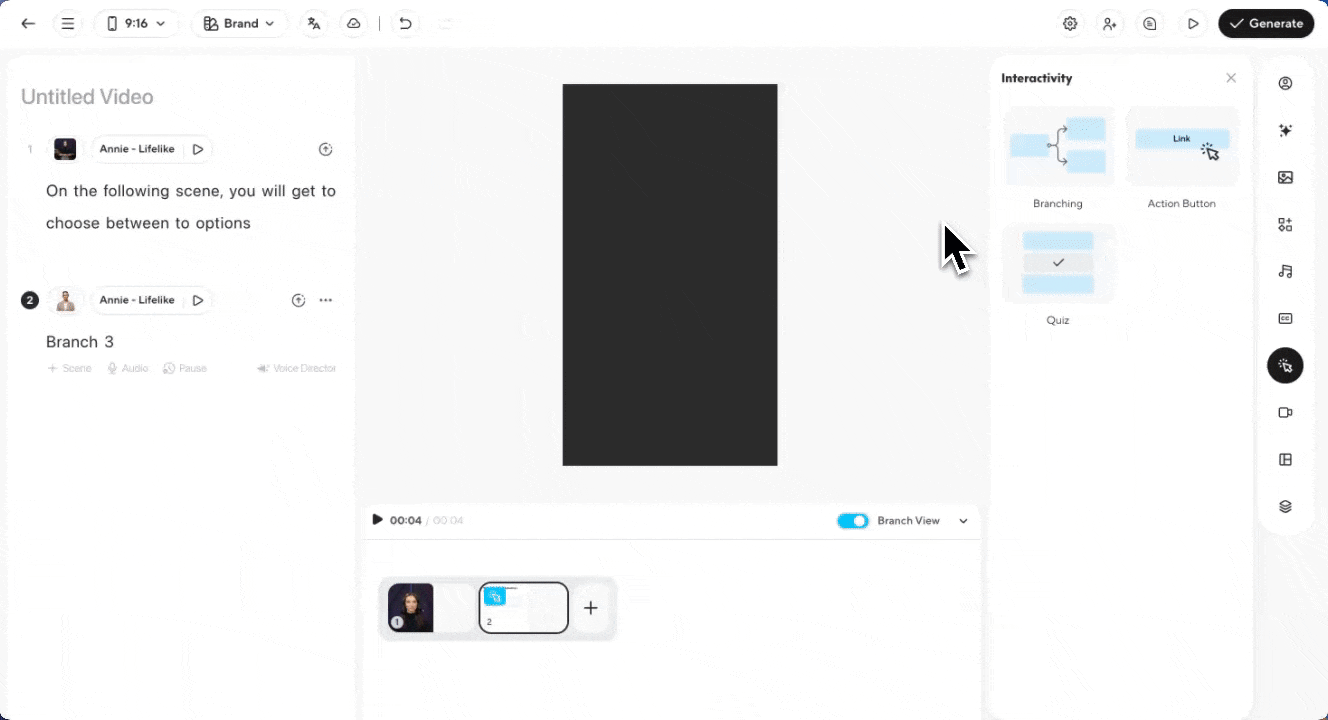 Branch view also makes it easy to reorganize your content as your video evolves. You can drag and drop scenes between different branches, which helps ensure that content is never locked into a single path or underutilized.