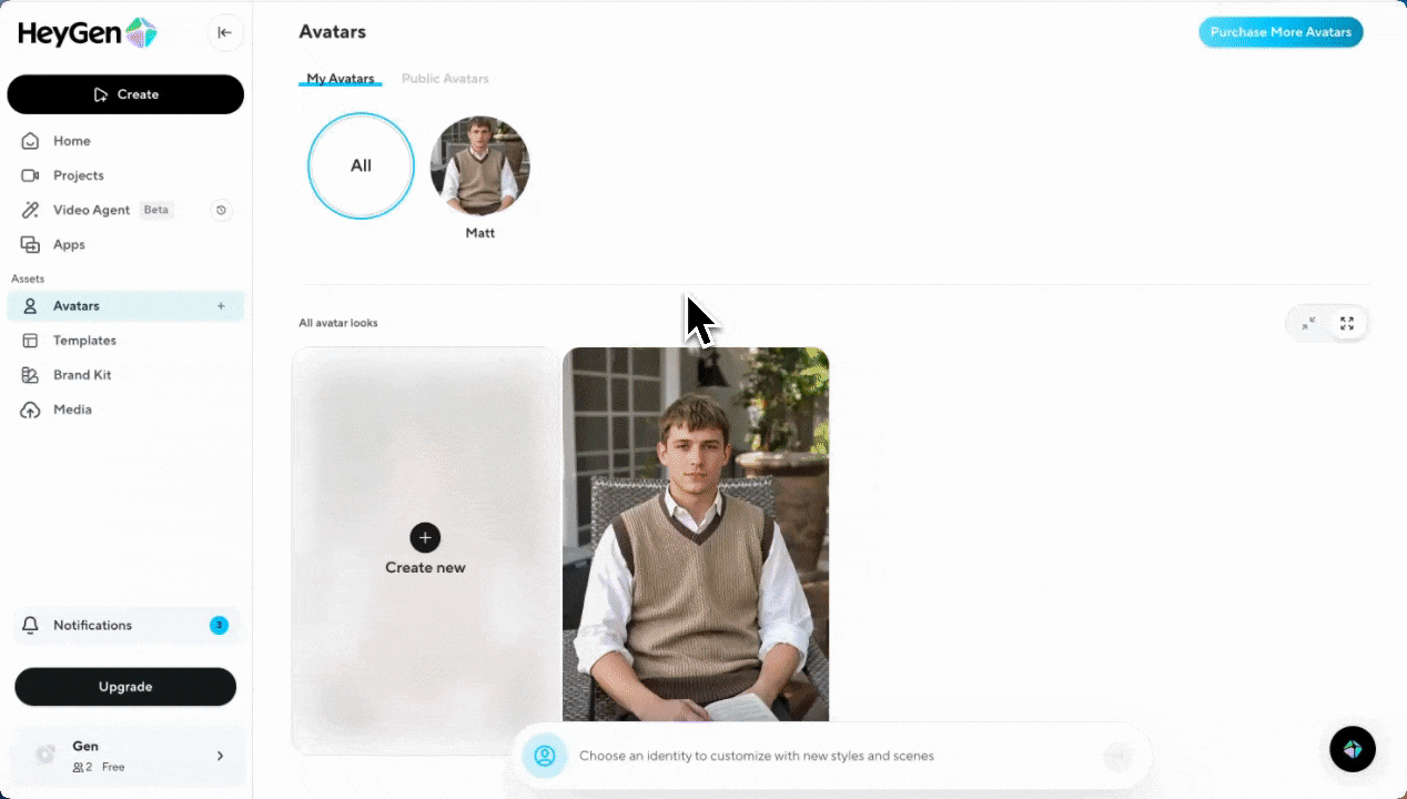 To get started, log in to your HeyGen account and navigate to the ‘Avatars’ tab.