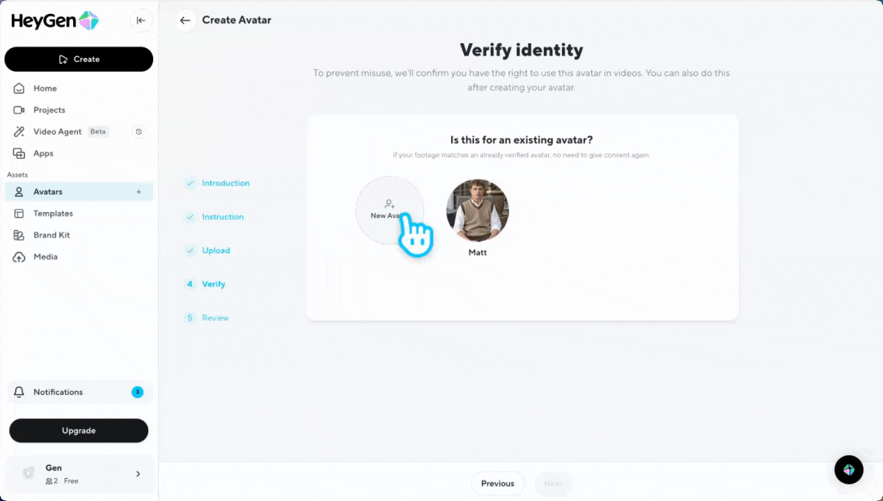 For safety and identity protection, you’ll be asked to record a short webcam verification video. This can be done right after you’ve created your avatar, and only takes a moment. If your footage matches an already verified avatar, no need to give consent again.