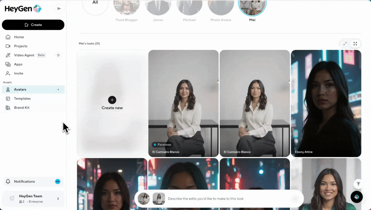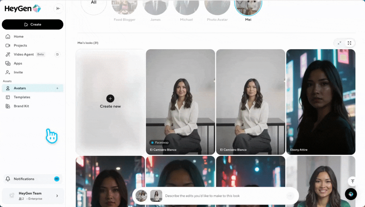 When creating videos, you can select an Avatar and then select which Look you want to use. Using multiple looks for different scenes can make your videos feel more natural and engaging.